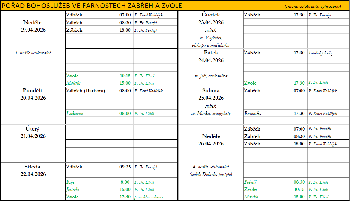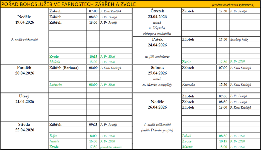 Pátek 24.4.2026 sv. Jiří, mučedníka